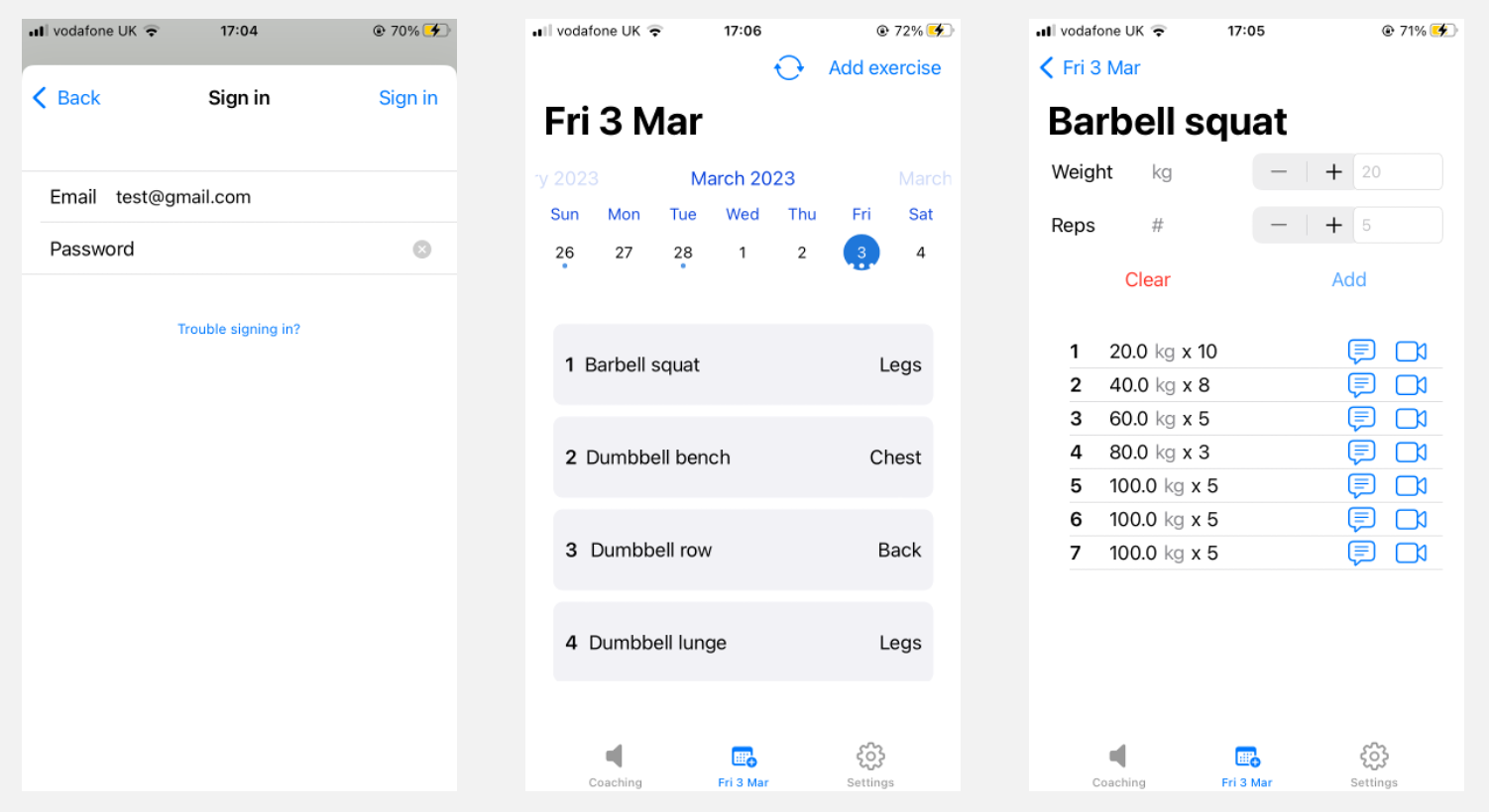 I've been powerlifting competitively for 5 years and more recently switched over to weightlifting. FitLog is built to solve the problems I was experiencing when trying to become a better lifter myself. The following features are currently under development: